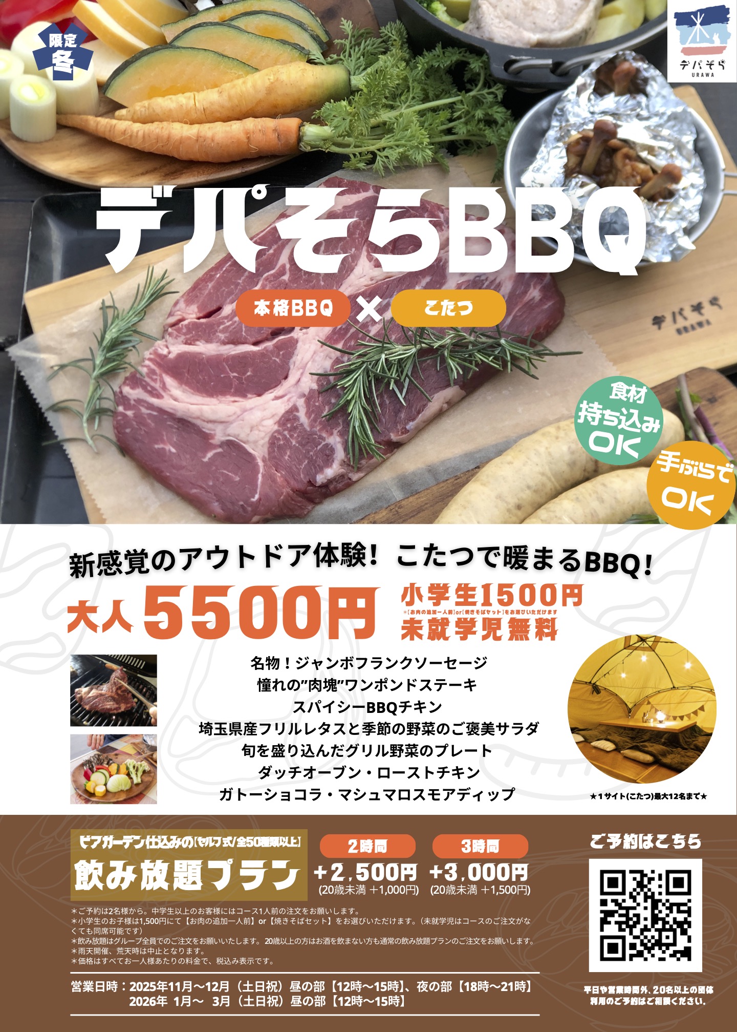 寒い季節でもBBQが楽しめる特別プラン♪