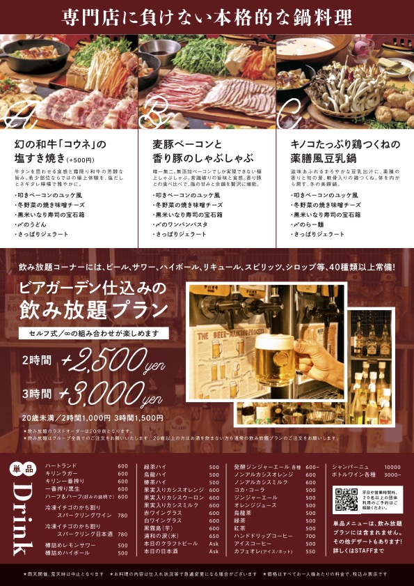 鍋コースを提供します♪